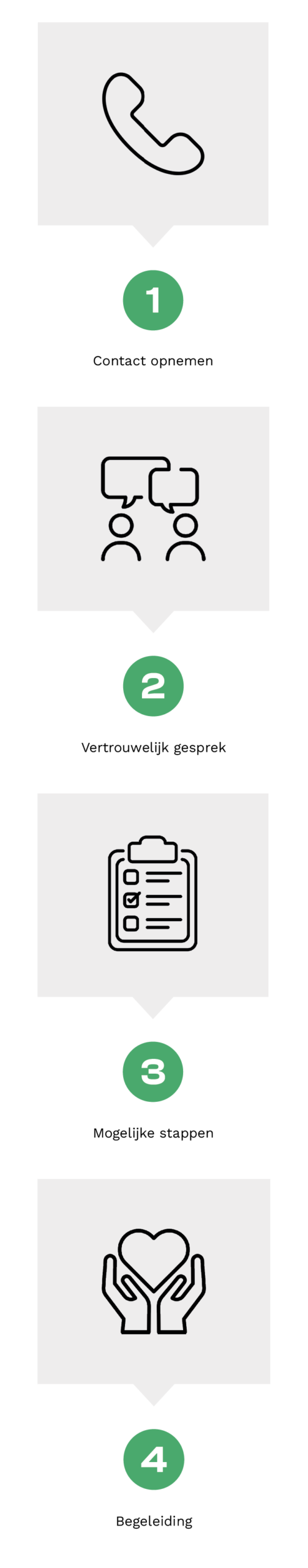 De werkwijze van onze vertrouwenspersonen is als volgt; zodra wij een melding ontvangen neemt de vertrouwenspersoon binnen 24 uur (werkdagen) contact op voor een korte intake. Tijdens deze intake wordt kort besproken wat het issue is en of dit thuishoort bij de vertrouwenspersoon. Als dit het geval is plannen de melder en de vertrouwenspersoon samen een afspraak in. Deze afspraak kan online of fysiek plaatsvinden, net wat de melder hierin prettig vindt. Tijdens de afspraak wordt verder ingegaan op het issue en wordt besproken wat vervolgstappen richting een oplossing zijn. De melder blijft altijd in de lead tijdens een traject. De vertrouwenspersoon is ondersteunend. De route die vaak wordt gevolgd is dat de vertrouwenspersoon en de melder eerst een afspraak met z’n tweeën hebben. Een volgende afspraak is vervolgens intern met de personen die betrokken zijn bij het issue. De vertrouwenspersoon kan ook aanwezig zijn bij zo’n afspraak ter ondersteuning van de melder. Tot slot zorgt de vertrouwenspersoon voor goede nazorg en checkt bij de melder of het traject naar wens is verlopen.